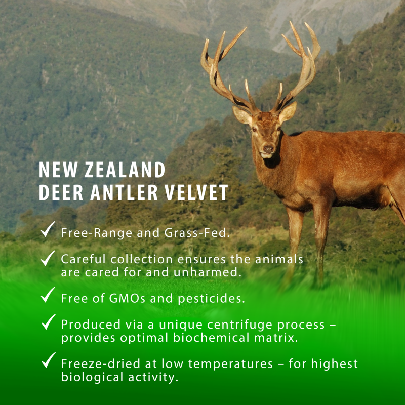- Immune function: Deer Antler Velvet has been used for thousands of years to boost the body’s natural defences by supporting healthy immune function, cardiovascular health, and blood cell production.